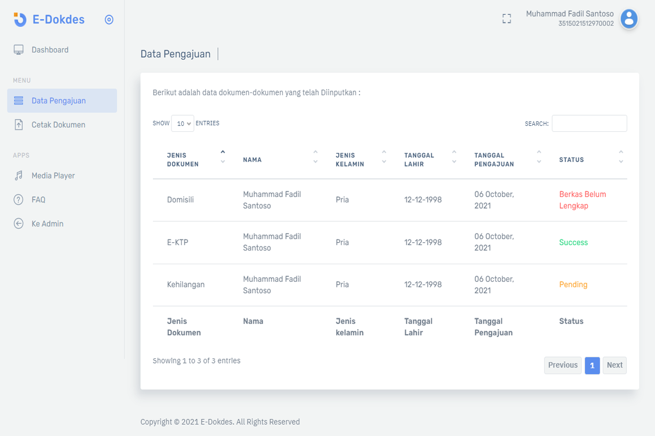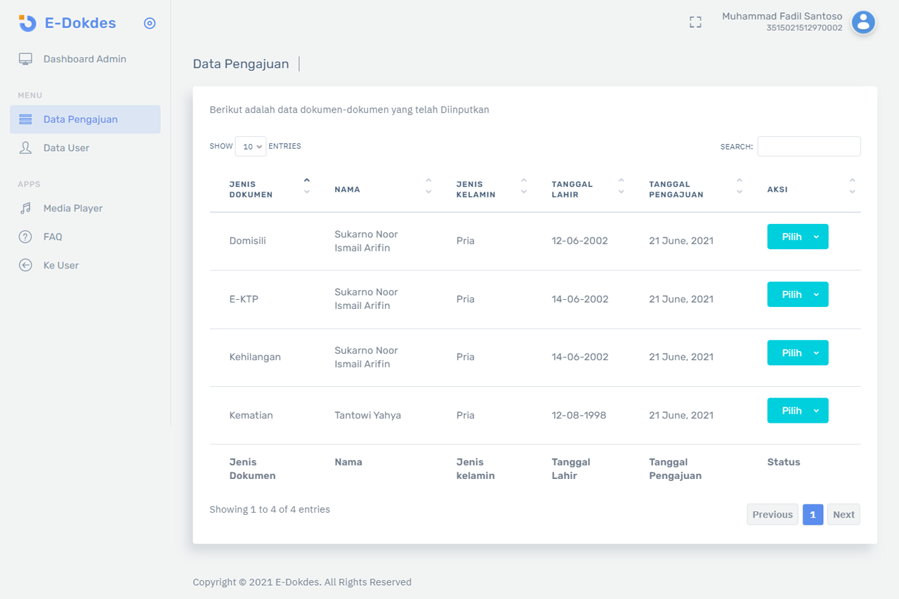 Aplikasi pengajuan dokumen desa dalam membantu meningkatkan pelayanan surat-surat desa secara online.