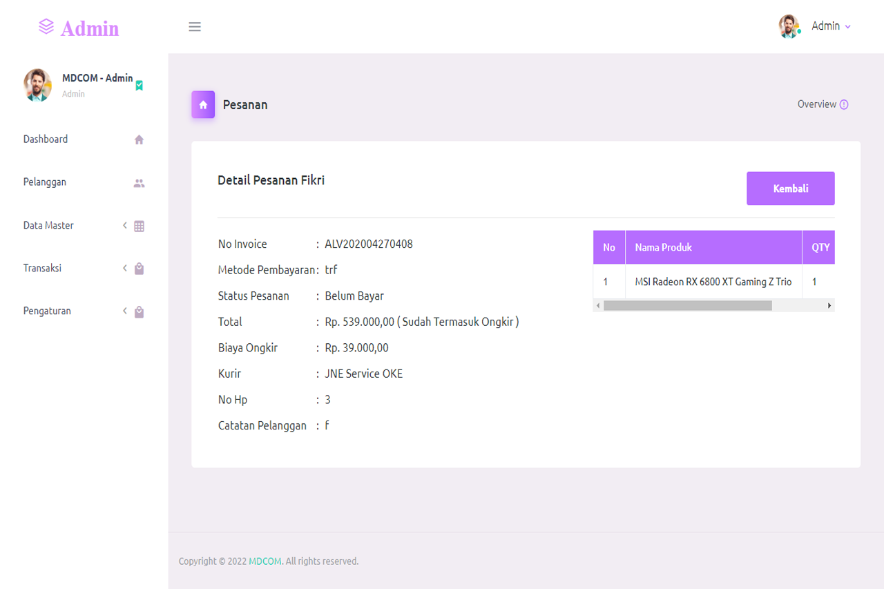 Aplikasi penjualan peralatan dan perlengkapan komputer dengan API rajaongkir. Serta laporan bulanan dan tahunan