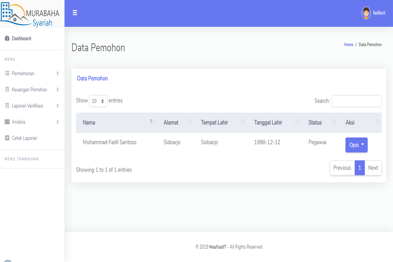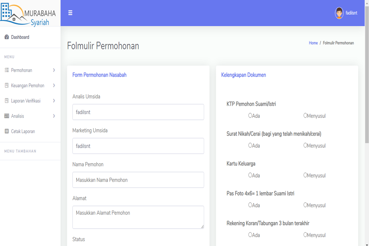 Aplikasi KPR yang dibuat untuk perbankan UMSIDA guna membantu pangajuan hingga pengkreditan nasabah.