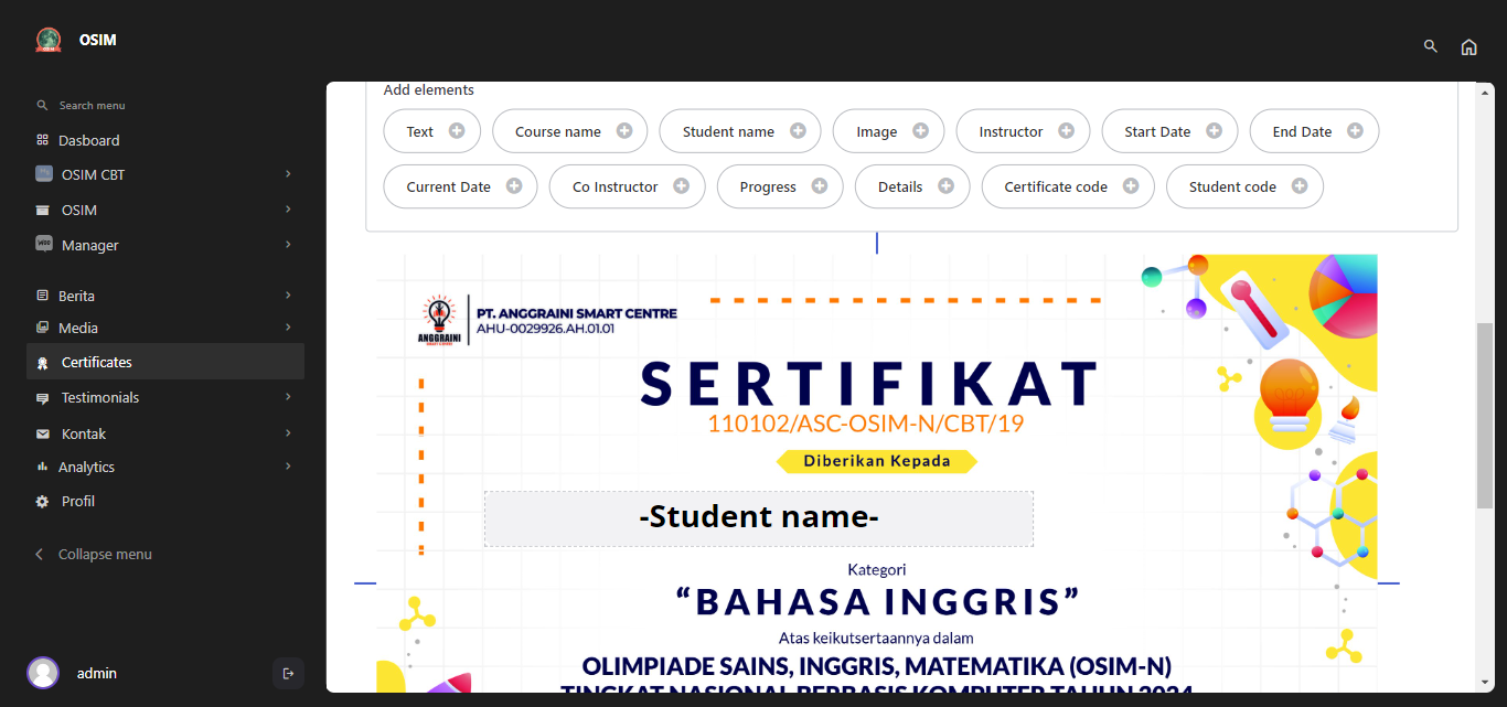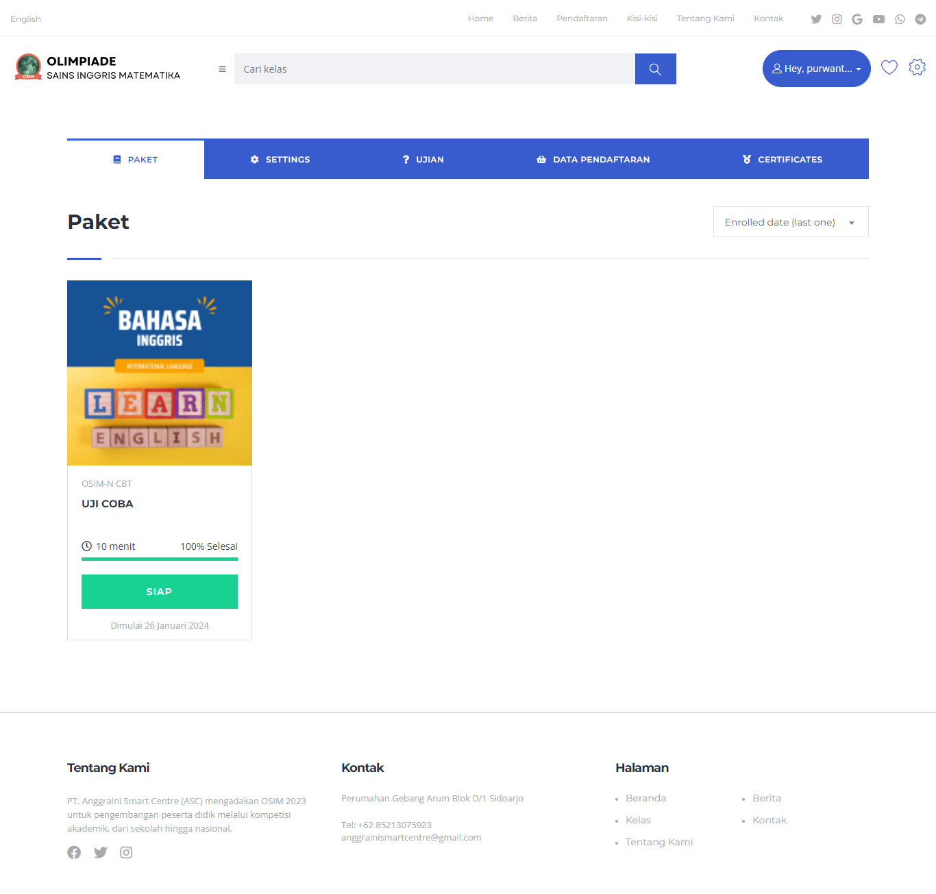 Aplikasi pendaftaran dan ujian Olimpiade Sians Inggris Matematika.